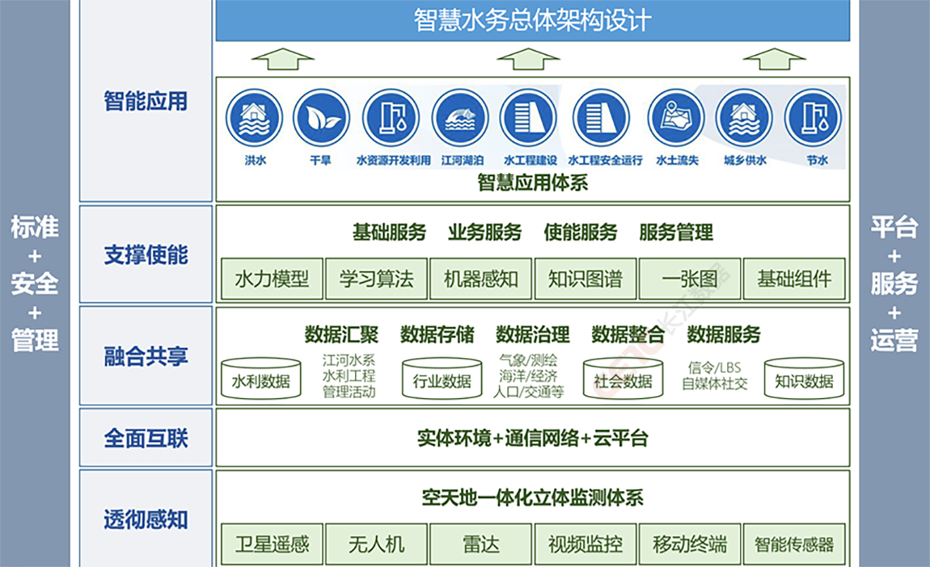 长江数据智慧水务一体化综合管理平台采用多层架构和分布式应用技术,以云端应用为基础,以互联网、5G、工业标准总线等网络技术为核心,建立一个安全可靠的应用集成平台。系统以“一个平台,一个中心,一个标准,加N个应用”的模式为基础,实现大数据、云计算、物联网、人工智能等新技术与水务行业的深度融合,打造城市级水务物联网体系。平台涉及污水流量监测、水质监测、管网及窨井液位监测、厂(站)泵自动化监控、排污企业的纳管排水监控、农村生活污水治理设施自动化监控等体系建设,主要功能包括远程监视管理、运行管理、设备管理、安全管理、巡检管理、数据分析、工单管理、移动智能APP应用等管理系统,实现实时生产工艺监测、实时视频数据监测、生产管理以及各种丰富的数据查询分析服务,辅助各类管理人员实现运营管理、数据智能分析、综合管理决策等功能。
